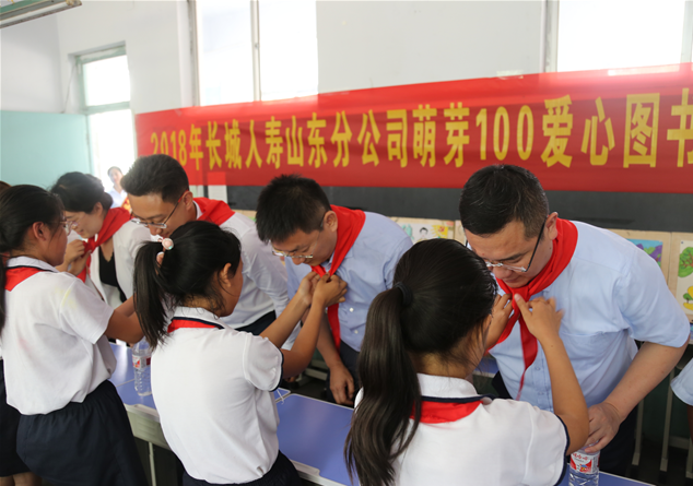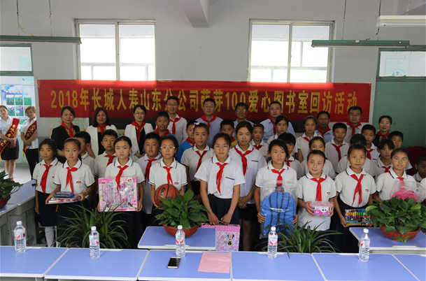 6月7日,長城人壽黨委書記祝艷輝、個(gè)險(xiǎn)總監(jiān)張剛、黨委辦公室主任蔡黎霞、總公司辦公室主任尹偉等人,同山東分公司淄博中支的內(nèi)外勤員工代表一起來到淄博博山區(qū)崮山鎮(zhèn)福和希望小學(xué),為這里的孩子們送來了一批學(xué)習(xí)用品,開始了對(duì)“萌芽100”愛心圖書室的回訪活動(dòng)。