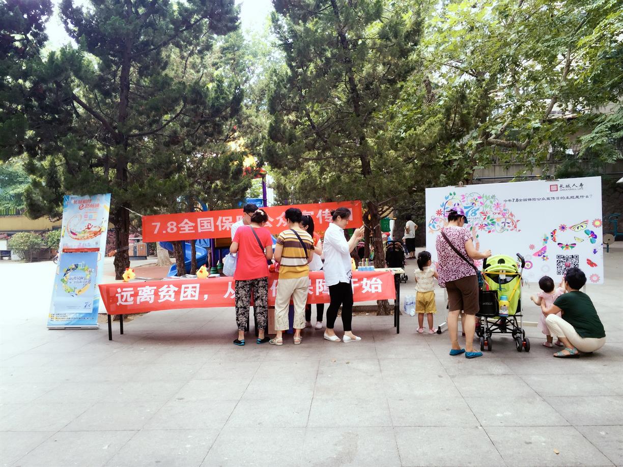 活動現(xiàn)場設(shè)置了宣傳臺,長城人壽青島分的員工在歡樂的氛中為社區(qū)居民普及保險知識、宣傳保險功能,送去了一份保險的關(guān)愛。