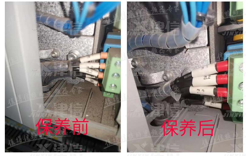某食品飲料公司現(xiàn)有各品牌變頻器100多臺,由于變頻器長期使用,內(nèi)部積灰較多,導致變頻器散熱情況較差,部分變頻器的端子接線不符合規(guī)范,通過維護保養(yǎng),消除使用隱患,確保變頻器運行穩(wěn)定。
