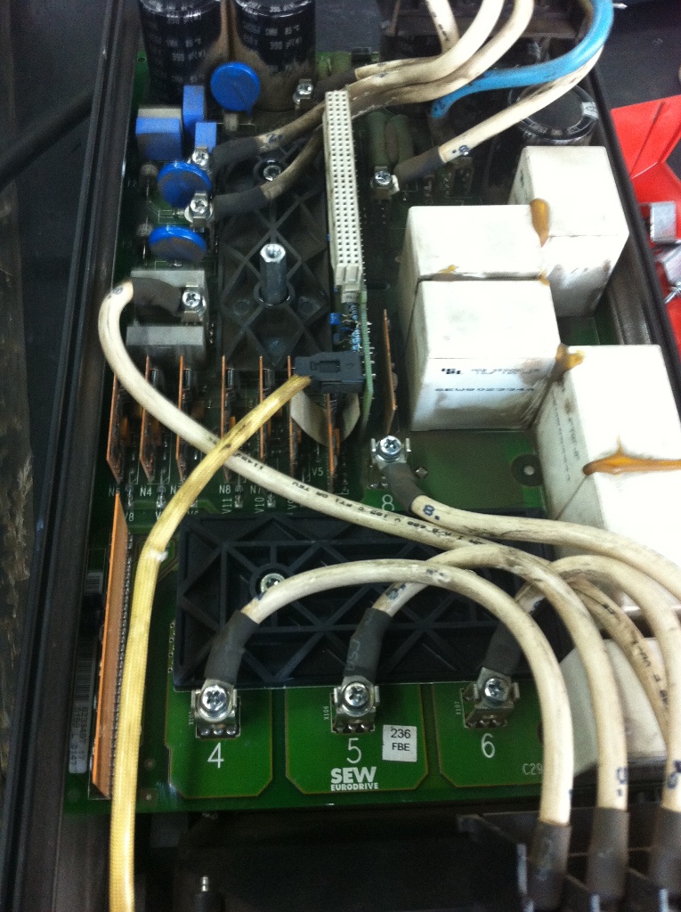由于變頻器使用的場合比較特殊,并且該機(jī)器配備同步控制功能,客戶對于該機(jī)器保養(yǎng)很好,機(jī)器內(nèi)部比較干凈。因此該機(jī)器發(fā)生故障肯定是由于器件本身損壞導(dǎo)致。