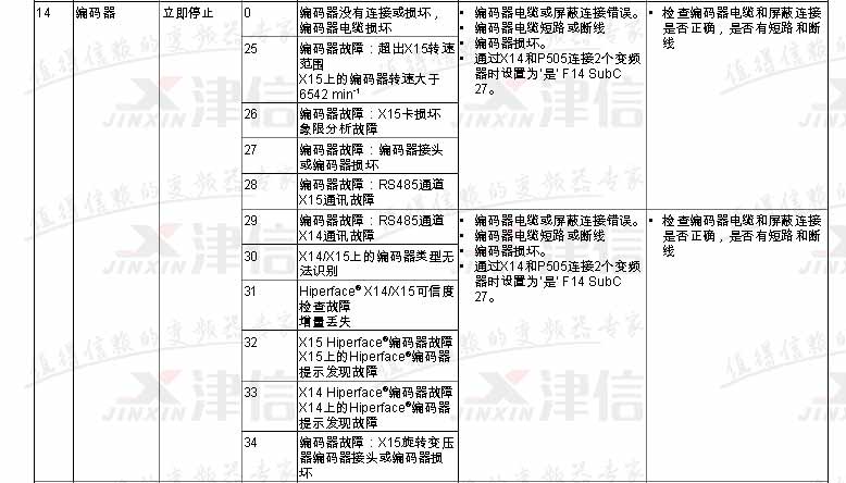 SEW變頻器故障代碼F27,F(xiàn)28,F(xiàn)29,F(xiàn)30,F(xiàn)31,F(xiàn)32,F(xiàn)33,F(xiàn)34,F(xiàn)35,具體如下: