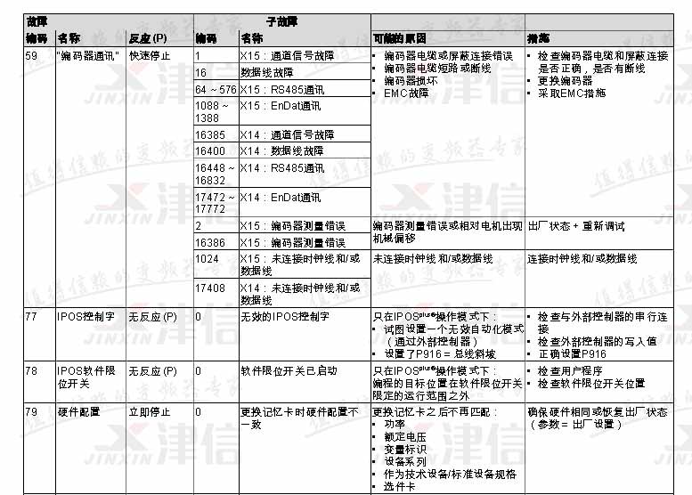 SEW變頻器故障代碼F59,F(xiàn)77,F(xiàn)78,F(xiàn)79,具體如下: