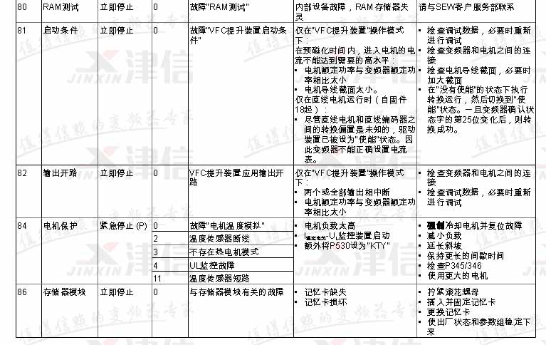 SEW變頻器故障代碼F80,F(xiàn)81,F(xiàn)82,F(xiàn)84,F(xiàn)86,具體如下: