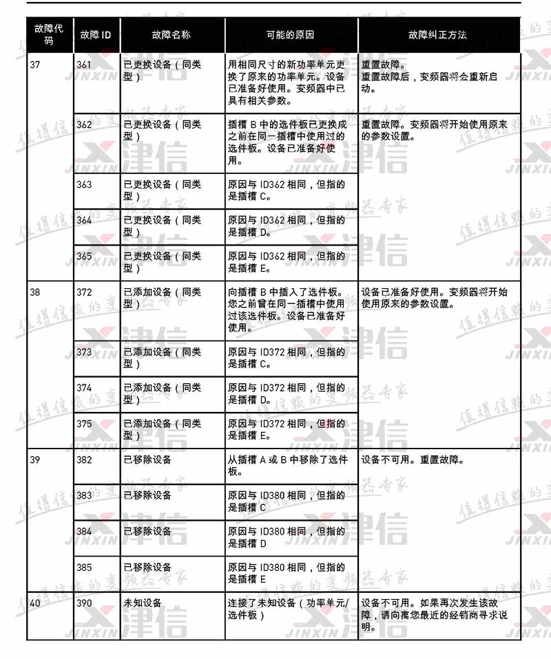 | 故障代碼 | 故障 ID | 故障名稱 | 可能的原因 | 故障糾正方法 |