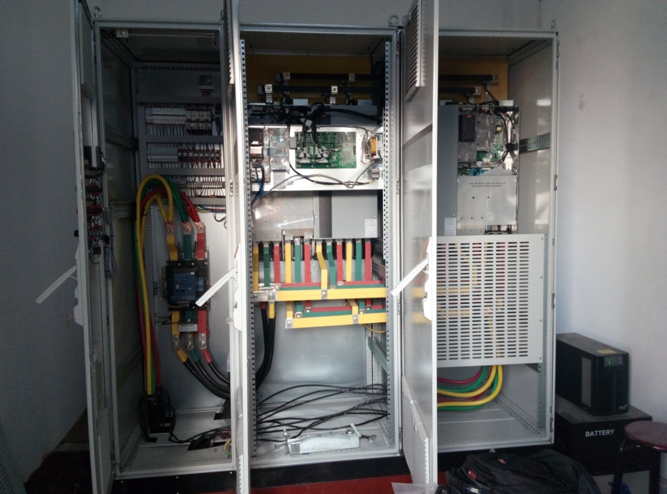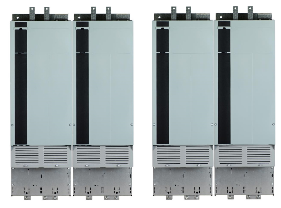 上海津信變頻器技術(shù)服務(wù)中心接到該客戶反應(yīng),客戶變頻器報(bào)A243制動(dòng) IGBT故障,并根據(jù)報(bào)告值確定為左邊第一個(gè)模組故障,經(jīng)與客戶溝通發(fā)現(xiàn)現(xiàn)場(chǎng)變頻器為新型N型并聯(lián)機(jī)型,為丹佛斯最新型號(hào)產(chǎn)品,如下圖